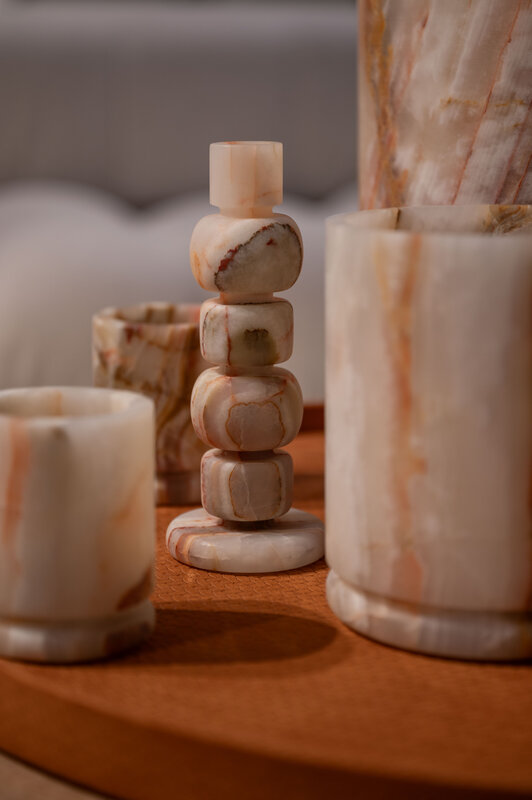 Zaconi pays homage to the stunning beauty of nature by using onyx, a natural, mineral and translucent stone. Each handmade object forms a truly unique masterpiece, revealing the art of nature through the veins and colour differences, which are a beautiful part of onyx's natural character and beauty.